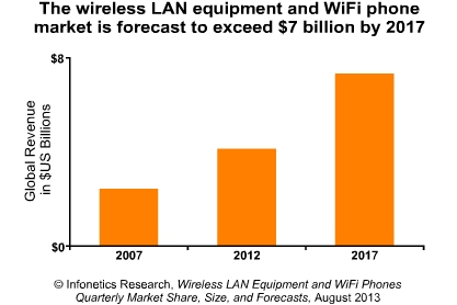 ICCSZ訊 日前,市場調(diào)研公司Infonetics發(fā)布其2013年三季度無線局域網(wǎng)設(shè)備和WiFi手機(jī)報告。