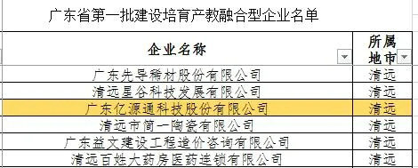 ICC訊 日前,廣東省發(fā)改委公布了《廣東省第一批建設培育產教融合型企業(yè)名單》,億源通榮列其中。