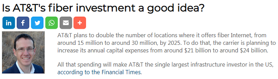 據《金融時報》(Financial Times)報道,這些支出將使AT&T成為美國最大的單一基礎設施投資者。