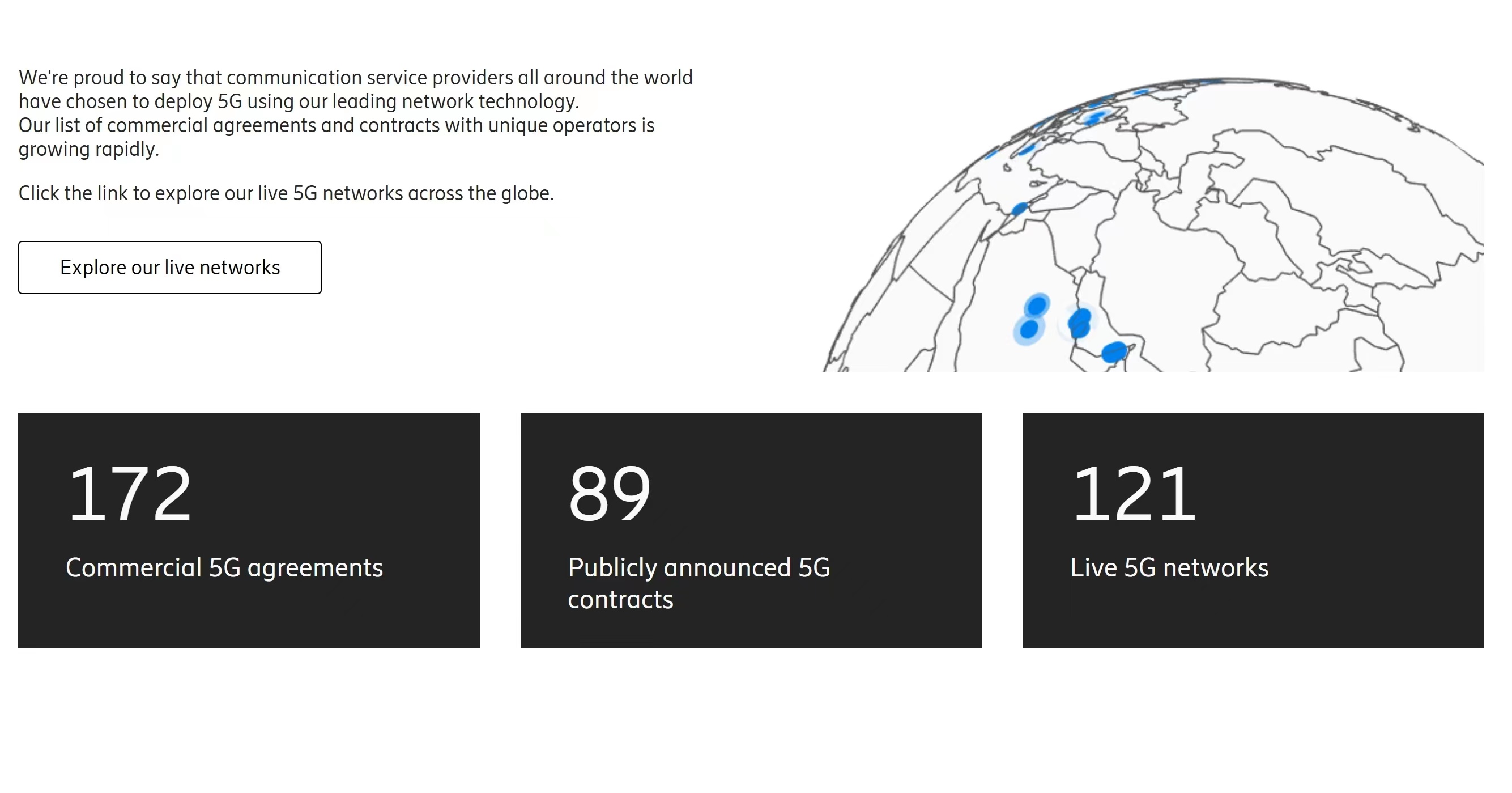 ICC訊 愛立信官網(wǎng)公布的數(shù)據(jù)顯示:截至目前,愛立信已經(jīng)在全球獲得172個(gè)5G商用合同,其中愛立信已經(jīng)與89家運(yùn)營(yíng)商客戶達(dá)成可公示的5G商用合同,目前在54個(gè)國(guó)家為121個(gè)已經(jīng)正式運(yùn)行的5G商用網(wǎng)絡(luò)提供設(shè)備。