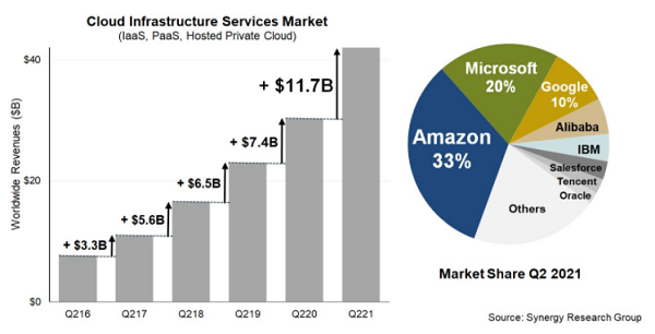 ICC訊(編譯:Nina)Synergy Research Group的新數(shù)據(jù)顯示,2021年第二季度,企業(yè)在云基礎設施服務商的支出達到420億美元,相比上一季度增加27億美元,跟2020年第二季度相比增長39%。該市場連續(xù)四個季度的同比增長率都在上升,對于如此龐大且高增長的市場而言,這是不尋常的。