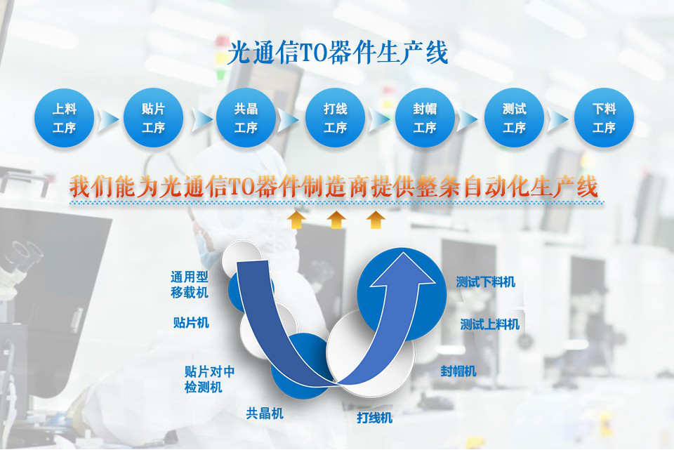 奧特恒業(yè)通過多年的自動(dòng)化系統(tǒng)集成領(lǐng)域技術(shù)積累和對(duì)光通信器件行業(yè)生產(chǎn)工藝流程的深入了解陸續(xù)針對(duì)行業(yè)需求開發(fā)了:通用型移載機(jī)、高精度貼片機(jī)、貼片對(duì)中檢測機(jī)、共晶機(jī)(研發(fā)中)、手動(dòng)改自動(dòng)封帽機(jī)、全自動(dòng)封帽機(jī)、 高精度封帽機(jī)、四腳插板機(jī)、五腳插板機(jī)、上料、測試、下料一體機(jī)等系列產(chǎn)品。
