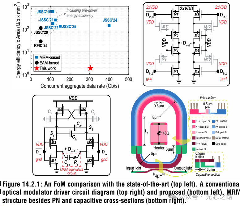 HUST展示協(xié)同設(shè)計(jì)的GF 45nm CMOS SOI 2×5×100Gb/s PAM4 DWDM MRM收發(fā)器。