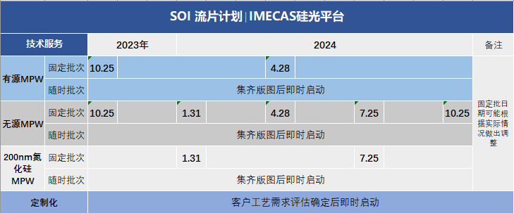 ICC訊 9月6日,中科微光子科技(成都)有限公司(簡(jiǎn)稱:中科微光子)參展CIOE并公布了最新的流片計(jì)劃表。中科微光子主要基于中科院微電子所硅光平臺(tái)開(kāi)展硅基光電子器件及集成芯片的制備和測(cè)試等技術(shù)服務(wù)的產(chǎn)業(yè)化,廣泛面向光通信、數(shù)據(jù)中心、光量子計(jì)算、激光雷達(dá)、微波光子、生物傳感等應(yīng)用領(lǐng)域。