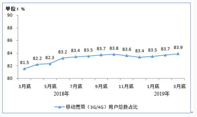 其中,移動寬帶用戶(即3G和4G用戶)總數(shù)達13.4億戶,占移動電話用戶的83.9%,較上年末提高0.5個百分點;4G用戶規(guī)模為12.04億戶,占移動電話用戶的75.4%,較上年末提高1個百分點。