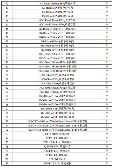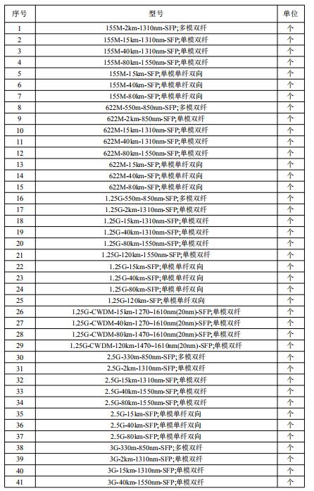 光模塊采購(gòu)清單如下: