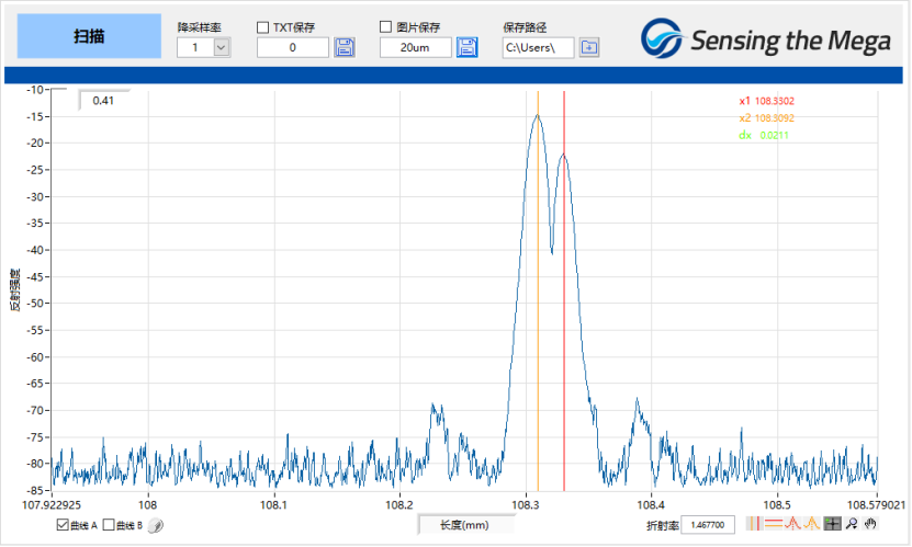 OLI對20um的空氣間隙測試結(jié)果如下:
