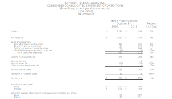 ICC訊(編譯:Nina)美國加州時間2020年11月18日,是德科技(Keysight Technologies, Inc.)(紐交所:KEYS)今天公布了其截至2020年10月31日的2020財年第四季度財務(wù)業(yè)績。