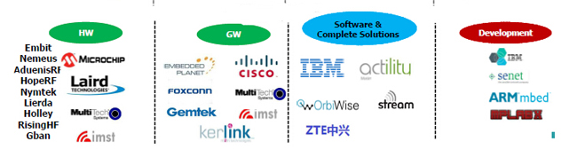 圖3:LoRa產(chǎn)業(yè)鏈中的廠家
