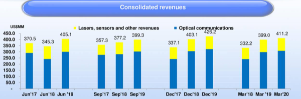 ICC訊(編譯:Nina)日前,泰國(guó)光器件和模塊代工廠Fabrinet(紐交所:FN)公布了其截至2020年3月31日的第三財(cái)季業(yè)績(jī)。