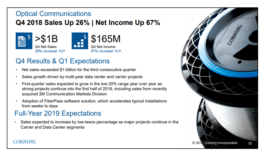 ICCSZ訊(編譯:Aiur) 康寧公司今天發(fā)布第四季度及2018財(cái)年業(yè)績,總結(jié)如下: