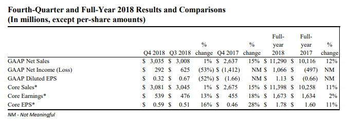 2、2018年核心銷售額114億美元,核心EPS為1.78美元,兩項(xiàng)數(shù)據(jù)同比上升11%。