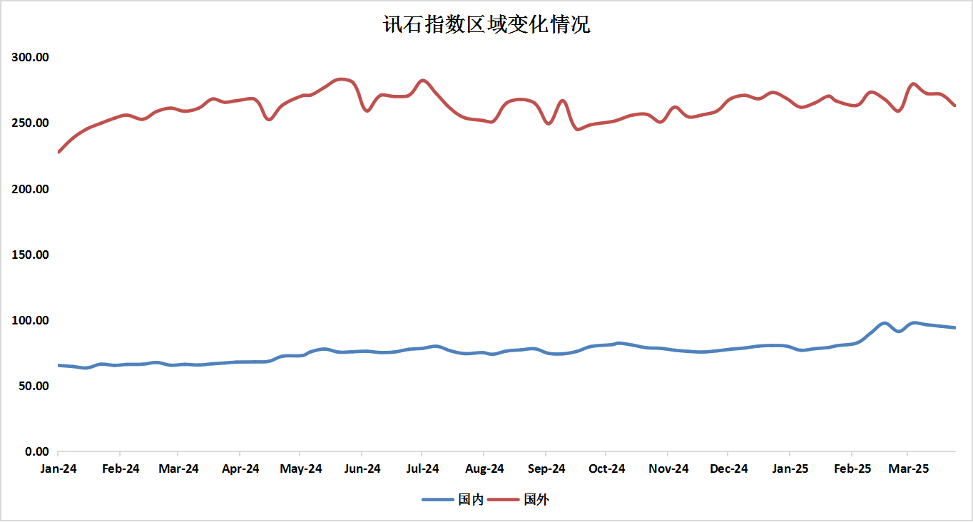 按地區(qū)劃分,截止到3月28日,ICC所統(tǒng)計(jì)的國內(nèi)通信指數(shù)為94.08,環(huán)比增長3.16%。國內(nèi)指數(shù)呈現(xiàn)增長趨勢。國外通信指數(shù)為263.2,較上月增長1.61%。國外通信股指在地緣政治與貨幣政策不確定性加劇市場震蕩,呈現(xiàn)下滑趨勢。