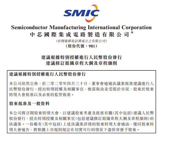 ICC訊 5月5日晚間,中國(guó)內(nèi)地芯片制造龍頭——中芯國(guó)際(0981.HK)宣布回A,擬在科創(chuàng)板上市。