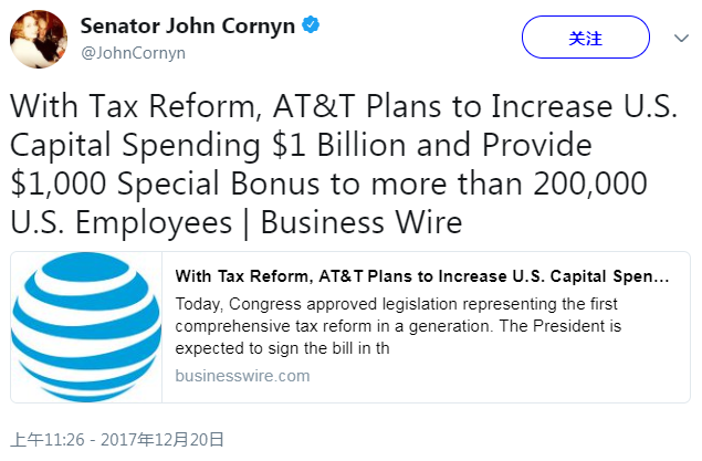 剛發(fā)了1000美元的“稅改紅利”津貼 AT&T又宣布全美裁員2000人