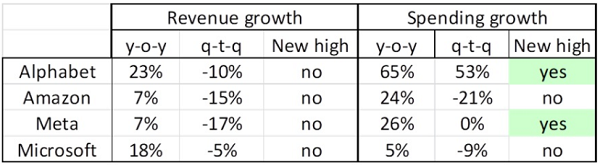 盡管今年ICP支出似乎有望繼續(xù)以兩位數(shù)的速度增長(zhǎng),但四大巨頭第一季度收入明顯下降,沒(méi)有創(chuàng)下記錄,四巨頭中亞馬遜和Meta收入同比增長(zhǎng)只有個(gè)位數(shù)。Alphabet、亞馬遜和微軟的云服務(wù)收入繼續(xù)以快于公司整體收入的速度增長(zhǎng),分別增長(zhǎng)了44%、37%和17%。
