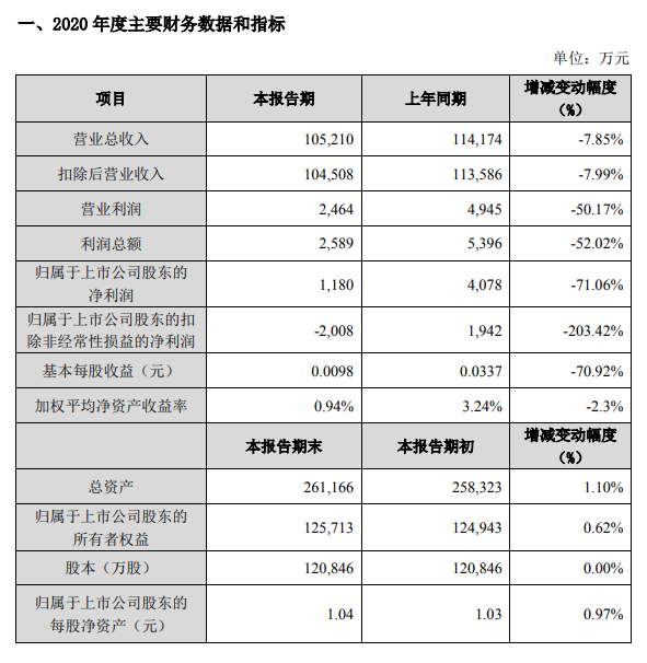ICC訊 (編輯:Anton)天津富通信息科技股份有限公司(簡稱:富通信息)發(fā)布2020 年度業(yè)績快報以及2021年第一季度業(yè)績預(yù)告。報告顯示,2020年富通信息實現(xiàn)營收人民幣10.52億元,同比下滑7.85%;歸屬上市公司股東的凈利潤1180萬元,同比下滑71.06%。