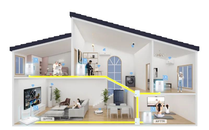與傳統(tǒng)組網(wǎng)相比,F(xiàn)TTR在FTTH光纖入戶基礎(chǔ)上,創(chuàng)新性使用光纖取代雙絞網(wǎng)線延伸至房間,突破網(wǎng)線速率限制,解決家庭Wi-Fi覆蓋難題,主從FTTR設(shè)備同時(shí)提供千兆網(wǎng)口和Wi-Fi 6連接,推進(jìn)家庭寬帶向全光千兆Wi-Fi演進(jìn),提供大寬帶、低時(shí)延、高品質(zhì)、平滑升級(jí)的業(yè)務(wù)承載能力,滿足高品質(zhì)業(yè)務(wù)需求。