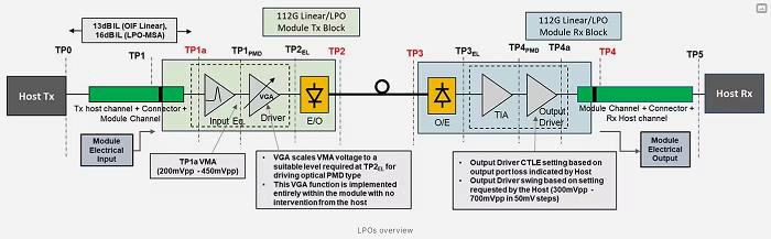 作為補充,LPO多源協(xié)議(LPO MSA)正在解決光鏈路性能和部署挑戰(zhàn),制定反映實際部署場景的端到端鏈路優(yōu)化方法學和壓力信號測試協(xié)議。