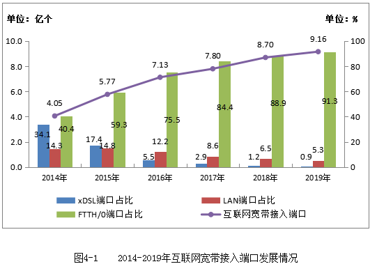 我國通信業(yè)持續(xù)加快光纖帶寬升級,接入網(wǎng)絡(luò)基本實現(xiàn)全光纖化,網(wǎng)絡(luò)提速卓有成效。截至12月底,新建光纜線路長度434萬公里,全國光纜線路總長度達(dá)4750萬公里。互聯(lián)網(wǎng)寬帶接入端口數(shù)量達(dá)到9.16億個,比上年末凈增4826萬個。其中,光纖接入(FTTH/0)端口占互聯(lián)網(wǎng)接入端口的比重達(dá)91.3%,較上年底小幅提高0.2個百分點(diǎn)。