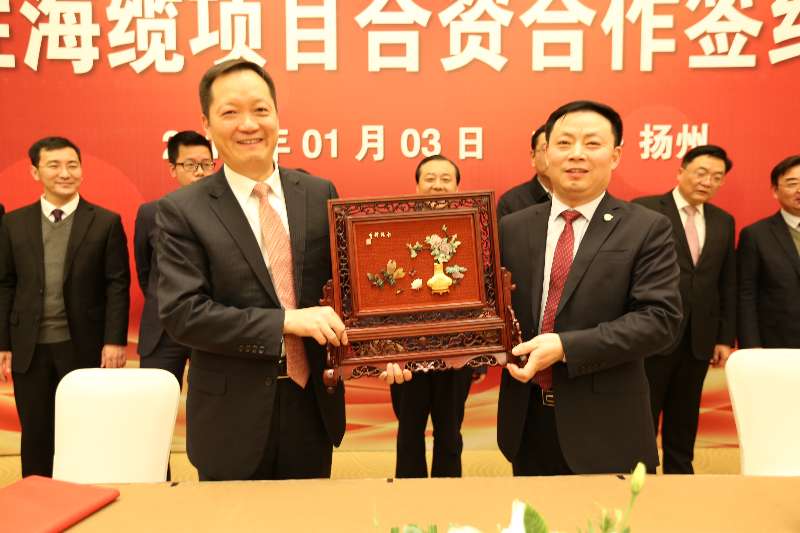 ICCSZ訊 2018年1月3日,長飛光纖光纜股份有限公司(以下簡稱“長飛公司”,股票代碼:6869.HK)與寶勝科技創(chuàng)新股份有限公司(以下簡稱“寶勝股份”,股票代碼:600973.SH)在美麗的瘦西湖畔揚州迎賓館簽署了海纜項目合資協(xié)議。揚州市市委書記謝正義,市委常委、常務副市長陳楊,市經濟技術開發(fā)區(qū)黨工委書記蔣愛祥, 市經濟技術開發(fā)區(qū)管委會主任陳曦等領導親臨會場祝賀,寶勝集團董事長楊澤元,副總裁梁文旭,寶勝股份副總裁夏成軍、陳大勇,長飛公司董事長馬杰,副總裁兼董事會秘書周理晶,財務總監(jiān)梁冠寧,戰(zhàn)略與市場部經理周欽敏等出席了簽約儀式。