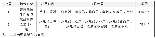 中國電信無源器件產(chǎn)品(2015年)集中采購項目已啟動,正在進(jìn)行公開招標(biāo),邀請有意向的潛在投標(biāo)人提出資格預(yù)審申請。本招標(biāo)項目劃分為兩個標(biāo)包,標(biāo)包1:普通無源器件標(biāo)包;標(biāo)包2:高品質(zhì)無源器件標(biāo)包。采購內(nèi)容為中國電信集團(tuán)公司和中國電信股份有限公司及其下屬的子公司、分公司到2016年12月底所需的普通無源器件產(chǎn)品和高品質(zhì)無源器件產(chǎn)品,本次招標(biāo)范圍具體如下圖: