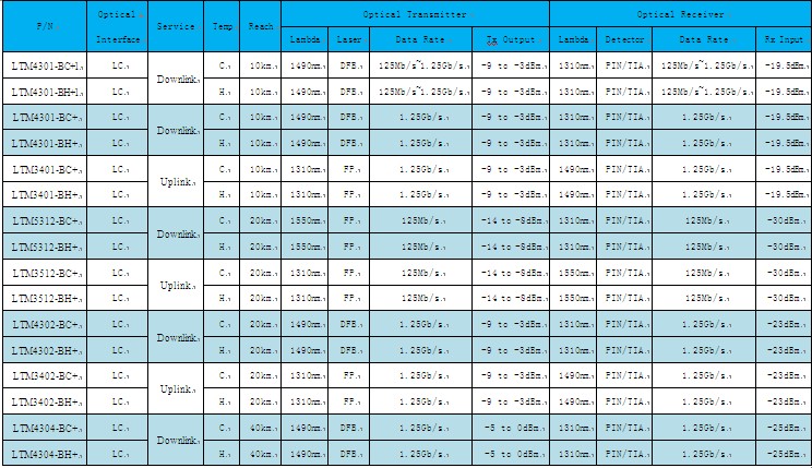 本系列產(chǎn)品滿足SFF-8472、100BASE-BX及1000BASE-BX的協(xié)議要求,主要應(yīng)用于百兆、千兆以太網(wǎng)和數(shù)據(jù)網(wǎng)。本系列產(chǎn)品性能指標(biāo)優(yōu)良,數(shù)據(jù)上行系列產(chǎn)品發(fā)射部分采用低成本、高性能1310nm FP激光組件,數(shù)據(jù)下行系列產(chǎn)品發(fā)射部分采用低抖動、高穩(wěn)定1490nm或1550nm DFB激光組件,全溫范圍內(nèi)光模塊的眼圖模板余量均可達到30%以上;接收部分均采用PIN+TIA方案,靈敏度指標(biāo)遠優(yōu)于國際標(biāo)準(zhǔn)IEEE802.3ah要求。