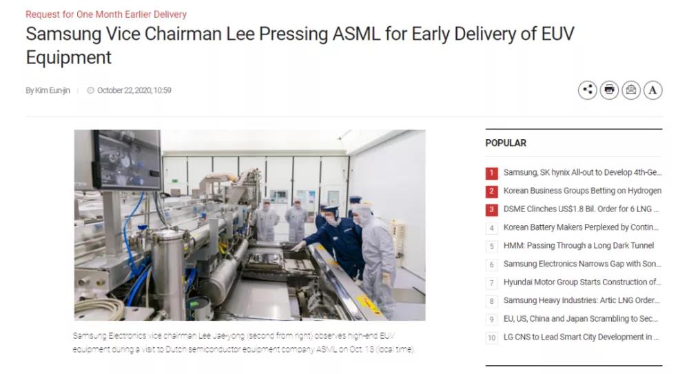 報(bào)道稱,ASML正在審查三星的要求,這部分EUV設(shè)備最早可于11月運(yùn)往韓國(guó)。