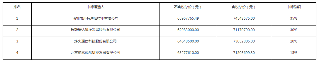 第3中標(biāo)候選人:烽火通信科技股份有限公司;