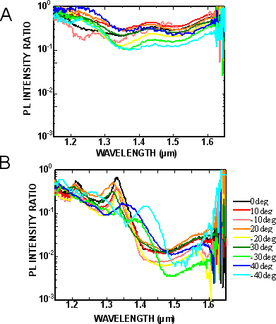 圖2 顯示的效果完全抑制物質(zhì)排放的三維光子晶體。 (A) 5層堆疊晶體和( B ) 9層堆疊