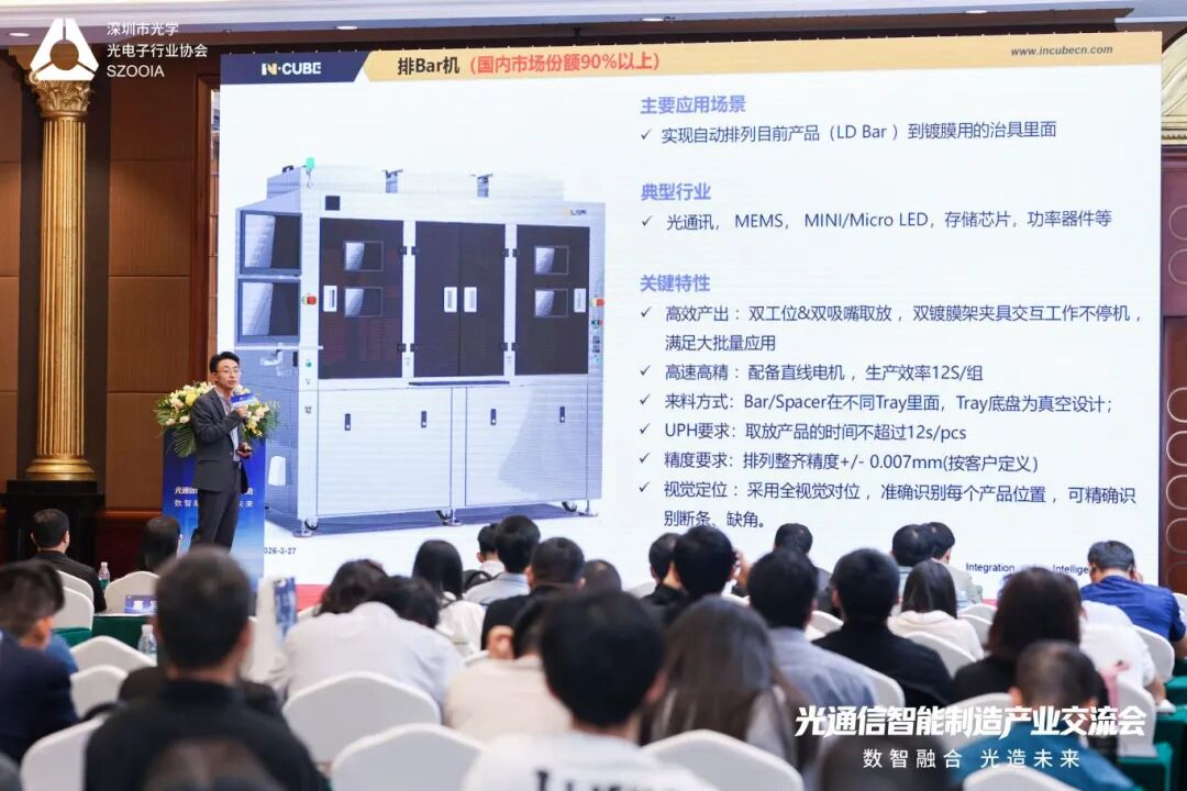 他指出,隨著 800G/1.6T 及更高速率光模塊需求持續(xù)爆發(fā),硅光與 CW 技術(shù)已成為下一代光互聯(lián)的核心支撐,而高精度、高一致性、高可靠性的智能制造裝備,正是實(shí)現(xiàn)規(guī)?;慨a(chǎn)與國(guó)產(chǎn)替代的關(guān)鍵。
