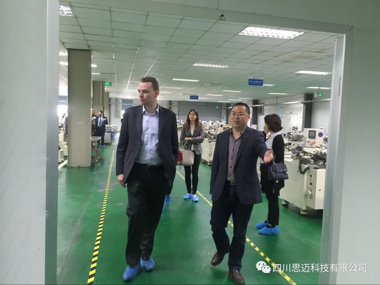 ICCSZ訊 4月9日,“2017中外知名企業(yè)四川行”意大利代表團(tuán)到四川思邁科技有限公司參觀考察,意中產(chǎn)業(yè)項目基金會主席王馨、意大利特尼能源公司CEO烏戈·本齊、艾諾瓦公司首席執(zhí)行官詹卡洛·君齊等企業(yè)高層一行30余人參觀了公司光分路器、光纖連接器生產(chǎn)車間。