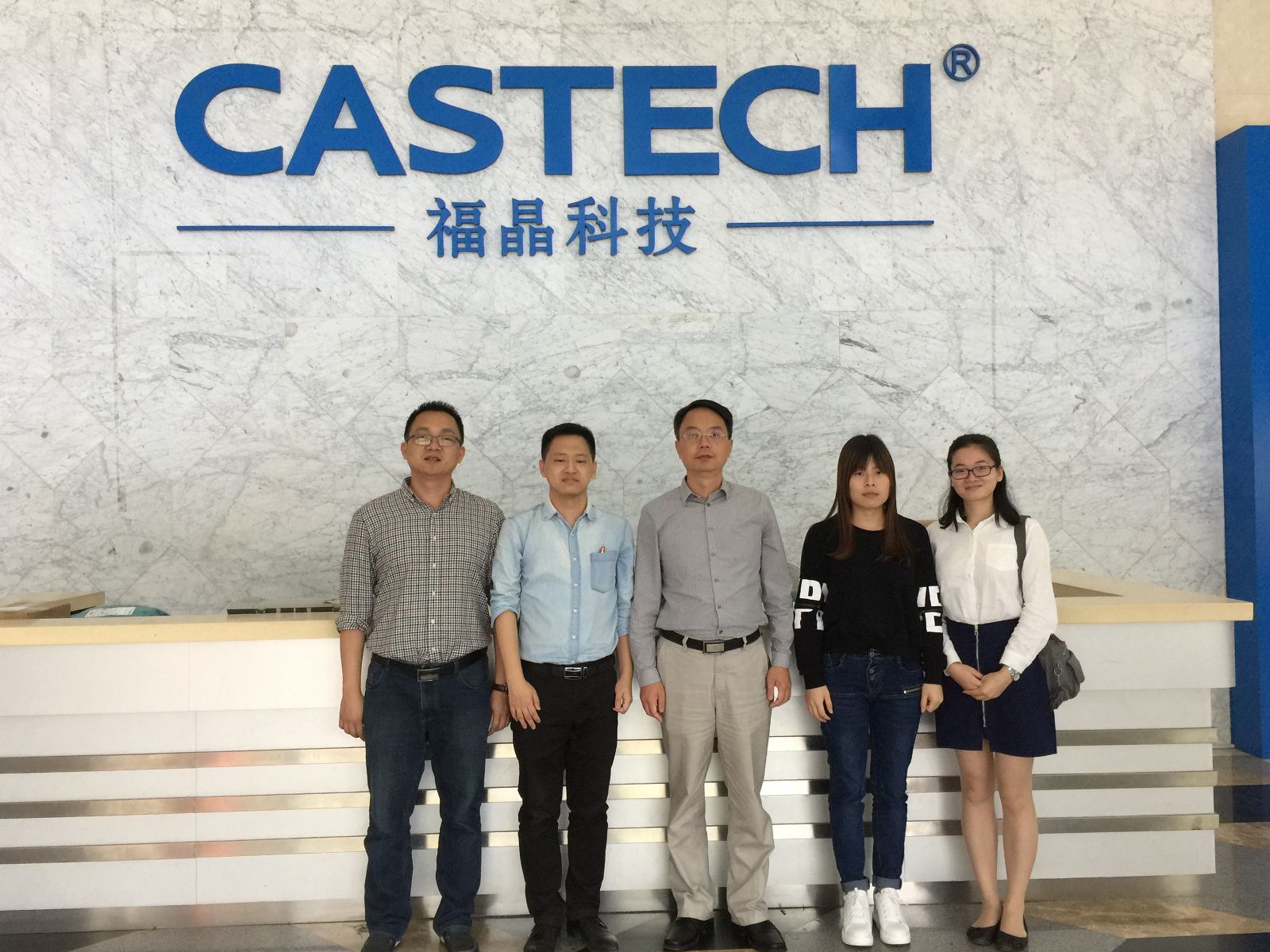 通產(chǎn)董事長范總(左四)等代表與訊石記者