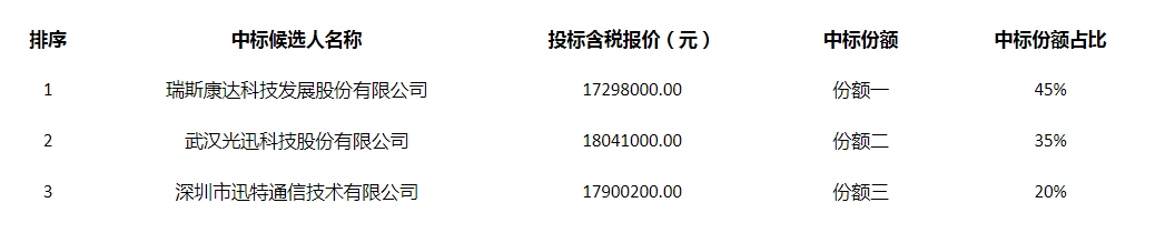 份額一中標(biāo)候選人:瑞斯康達(dá)科技發(fā)展股份有限公司