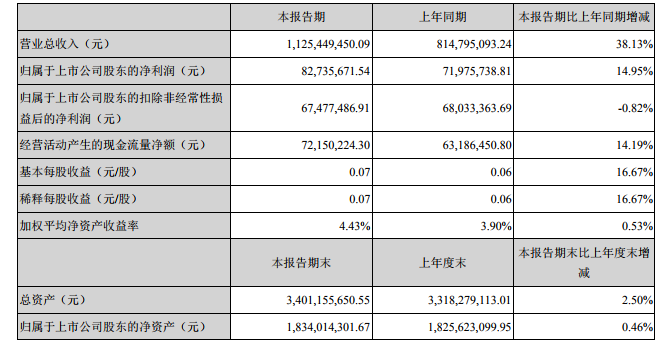 ICCSZ訊 (編輯:Nicole)近日,深圳市聚飛光電股份有限公司(以下簡稱:聚飛光電或本公司)公布2018上半年業(yè)績:報告期內(nèi),公司整體經(jīng)營情況良好,主營業(yè)務(wù)保持穩(wěn)定增長,實現(xiàn)營業(yè)總收入112,544.95萬元,比上年同期增長38.13%;歸屬于上市公司股東的凈利潤8,273.57萬元,比上年同期增長14.95%。