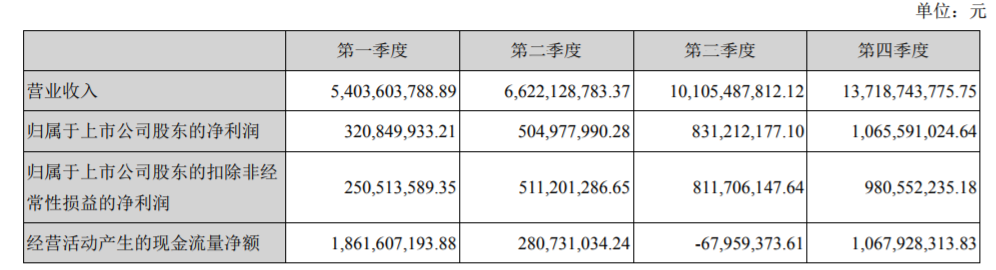 2018年度業(yè)績(jī)分季度情況如下: