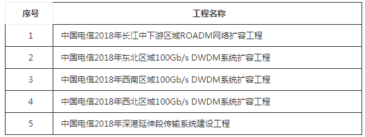 ICCSZ訊(編輯:Aiur) 4月23日消息,中國電信公布2018年長江中下游區(qū)域ROADM網(wǎng)絡(luò)及西北、西南、東北區(qū)域和深港延伸段4個(gè)100G DWDM系統(tǒng)擴(kuò)容工程單一來源采購結(jié)果,華為、中興通訊和烽火通信入選。