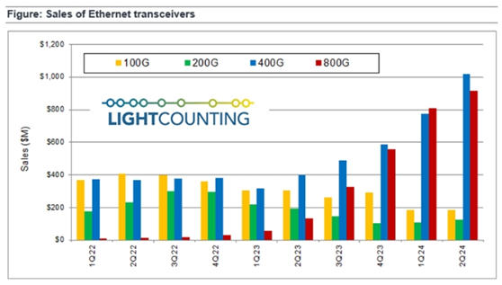 Q2全球光模塊市場銷售額創(chuàng)新紀(jì)錄(來源:LightCounting)