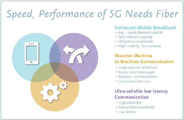 5G投資正在增長。根據(jù)RVA LLC為美國FTTH協(xié)會(目前更名為光纖寬帶協(xié)會)所做的研究,2016年,美國FTTH用戶達(dá)到1370萬,FTTH家庭覆蓋數(shù)達(dá)到3400萬?,F(xiàn)階段,美國有超過1000個不同規(guī)模和架構(gòu)的FTTH網(wǎng)絡(luò)正在部署。這是一個好的開始,但同時還有上億的家庭沒有光纖連接。正如前文所強(qiáng)調(diào)的,5G需要更多的光纖,光纖將支持5G部署。這兩種技術(shù)是互補(bǔ)的。