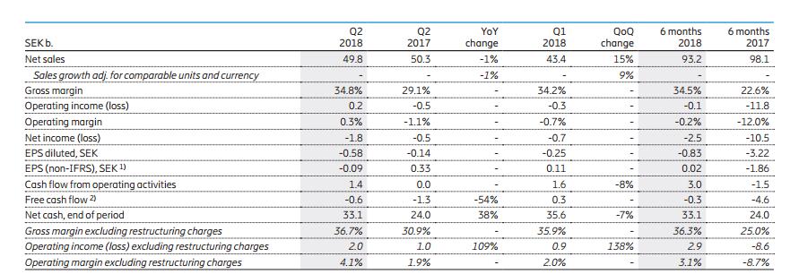 ICCSZ訊(編譯:Vicki)愛立信公司(NASDAQ: ERIC)今天發(fā)布了截至6月30日的2018財(cái)年第二季度財(cái)報(bào)。報(bào)告顯示,愛立信第二季度營收為498.08億瑞典克朗(約合56.20億美元),較上年同期的502.81億瑞典克朗下降1%;歸屬于愛立信母公司股東的凈虧損為18.02億瑞典克朗,較上年同期的凈虧損5億瑞典克朗擴(kuò)大約300%。Q218季度毛利率為34.8%。