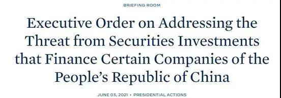 據(jù)白宮網(wǎng)站的公告,根據(jù)美國相關法律,美國總統(tǒng)拜登認為,有必要采取更多措施來應對2020年11月12日第13959號行政命令宣布的國家緊急狀態(tài)(即解決所謂“中國涉軍企業(yè)”投資威脅的禁令),包括中國的軍工聯(lián)合體及其參與軍事、情報和安全研發(fā)計劃以及中國軍民融合戰(zhàn)略下的武器和相關裝備生產(chǎn)所構成的威脅。