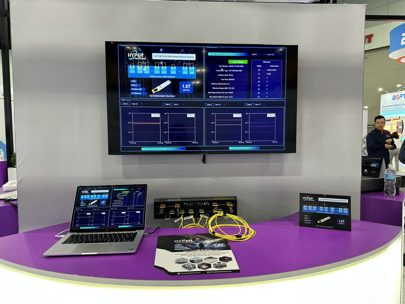 第二個(gè)核心演示,是1.6T硅光模塊在NVIDIA Q3200-RA交換機(jī)和Keysight N1093B上的性能展示,重點(diǎn)驗(yàn)證產(chǎn)品面向AI工作負(fù)載的高性能傳輸、信號(hào)完整性、電源效率及熱性能,充分證明其可滿足大規(guī)模AI訓(xùn)練和推理的互聯(lián)需求。