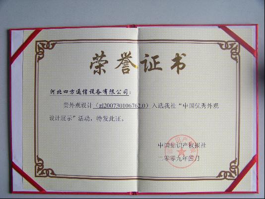近日,四方通信公司的主營產品—GPX278B2型光纖配線架的外觀設計專利(專利號:zl200730106762.0)成功入選中國知識產權報社“中國優(yōu)秀外觀設計展示”活動,并獲得了該報社頒發(fā)的榮譽證書。