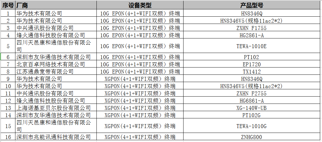 標(biāo)包1:10G EPON(4+1+WIFI雙頻)終端須為通過“2019年中國聯(lián)通10G PON 上行智能網(wǎng)關(guān)終端技術(shù)測試”的入圍產(chǎn)品(具體入圍產(chǎn)品名單請看下圖);