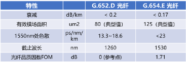 G.652.D與G.654.E光纖參數對比