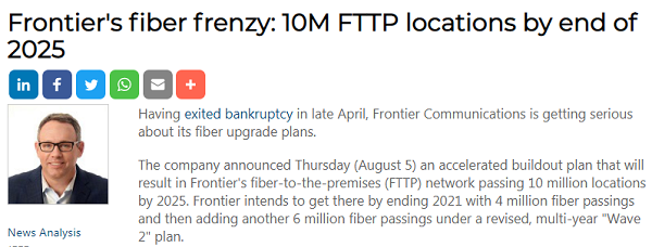 Frontier的光纖狂潮:2025年底FTTP站點(diǎn)達(dá)1000萬(wàn)個(gè)