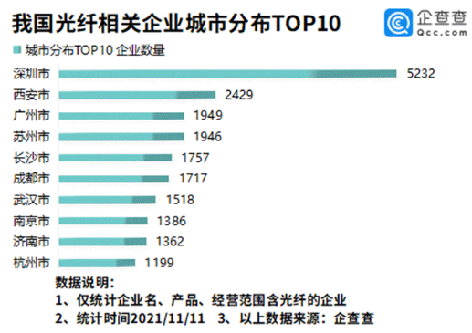 光纖企業(yè)城市分布:深圳最多,其次是西安、廣州