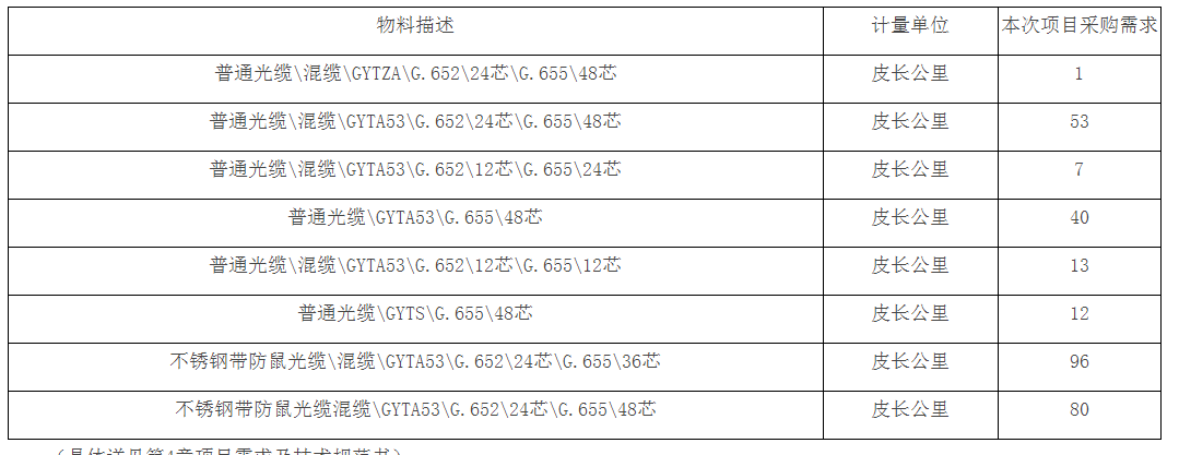 根據(jù)工程需求,采購全區(qū)所需光纖光纜1批,具體如下圖: