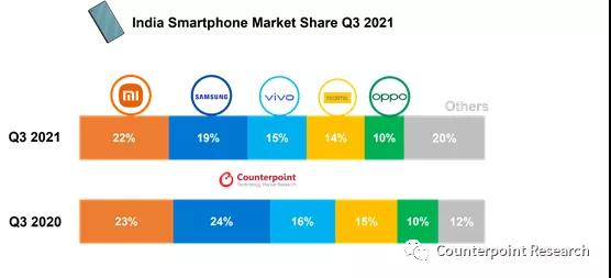 高級研究分析師Prachir Singh在評論市場動態(tài)時說:"在印度第二波疫情之后,智能手機出貨量保持了強勁的勢頭。由于被抑制的需求仍然很高,消費者的需求并未沒有完全得到滿足。全球零部件短缺使大多數(shù)品牌都在積極努力為排燈節(jié)期間儲備足夠的庫存。線上渠道的需求仍然強勁,并在2021年三季度達到有史以來的最高出貨量"。