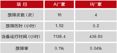 此次測試采用A廠家和B廠家兩種設(shè)備,測試結(jié)果類同,具體如表1所示。